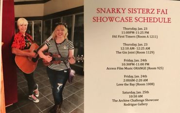 2021: Weekly live streaming web-TV show Sunday Songwriters' Showcase with the Snarky Sisterz - every Sunday for an hour on Facebook Live - archived at https://www.facebook.com/snarkysisterzhour.